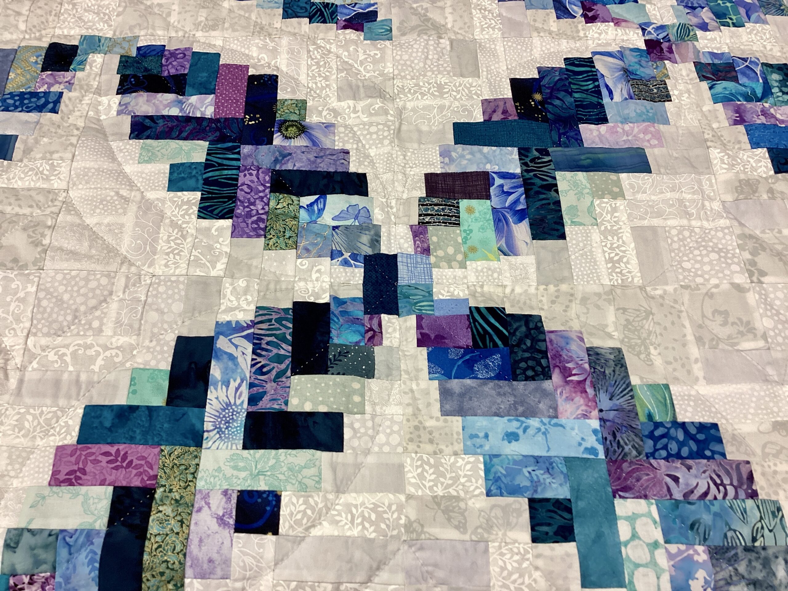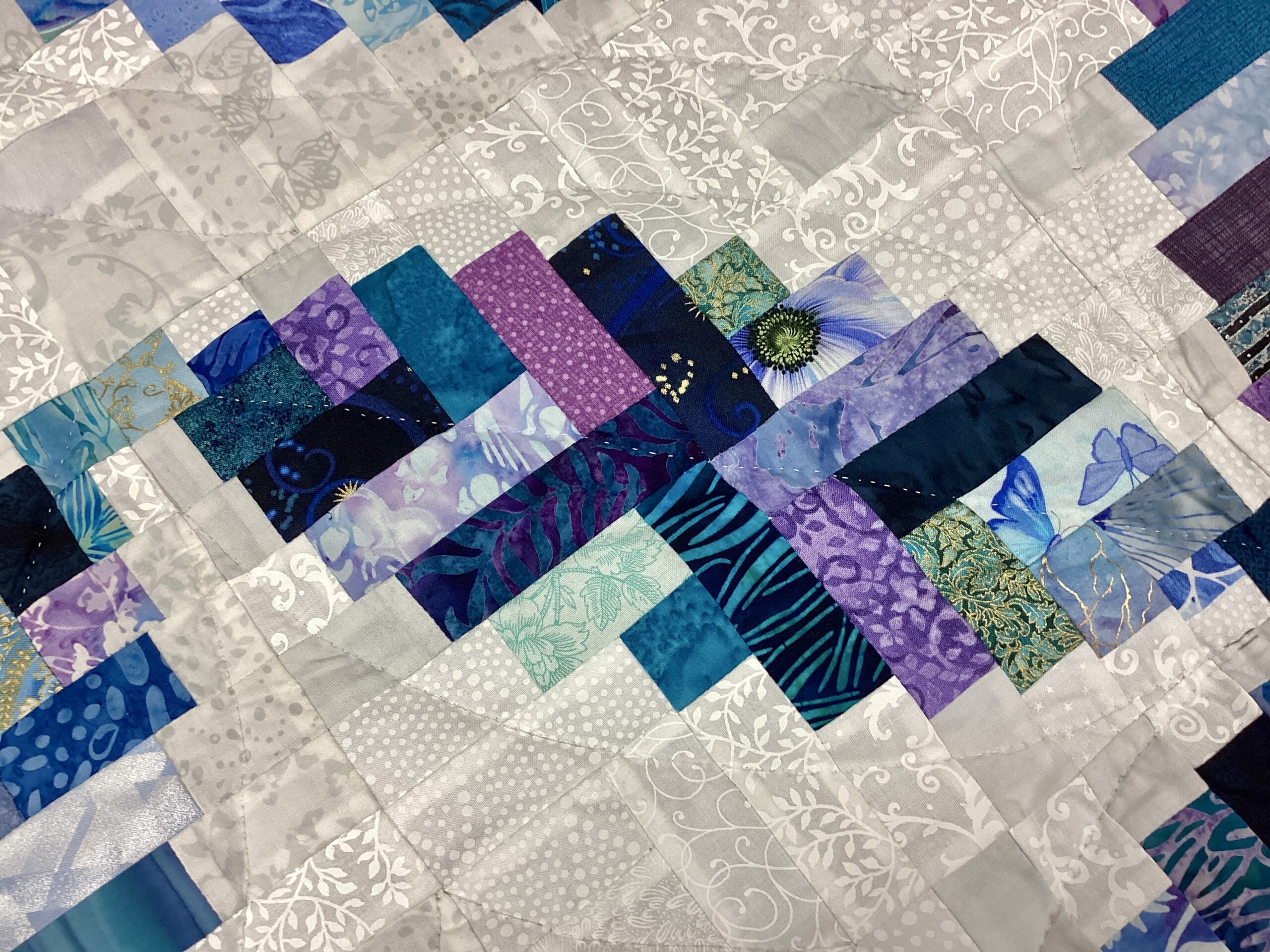 A Buckeye Curvy Log Cabin in Jewel Tones of Purple Turquoise and Blue