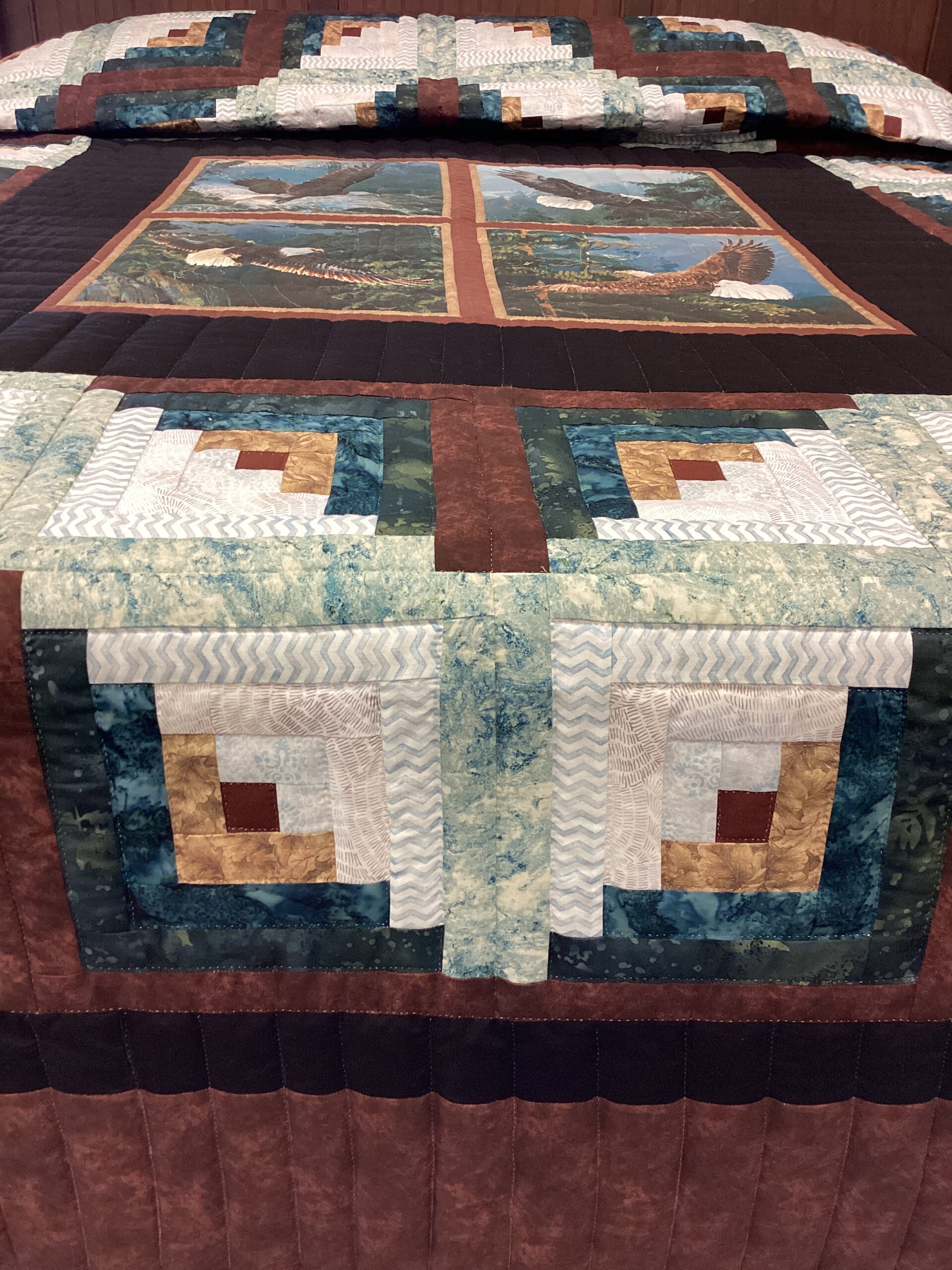 Eagle in Flight Scene Log Cabin Quilt in King Size