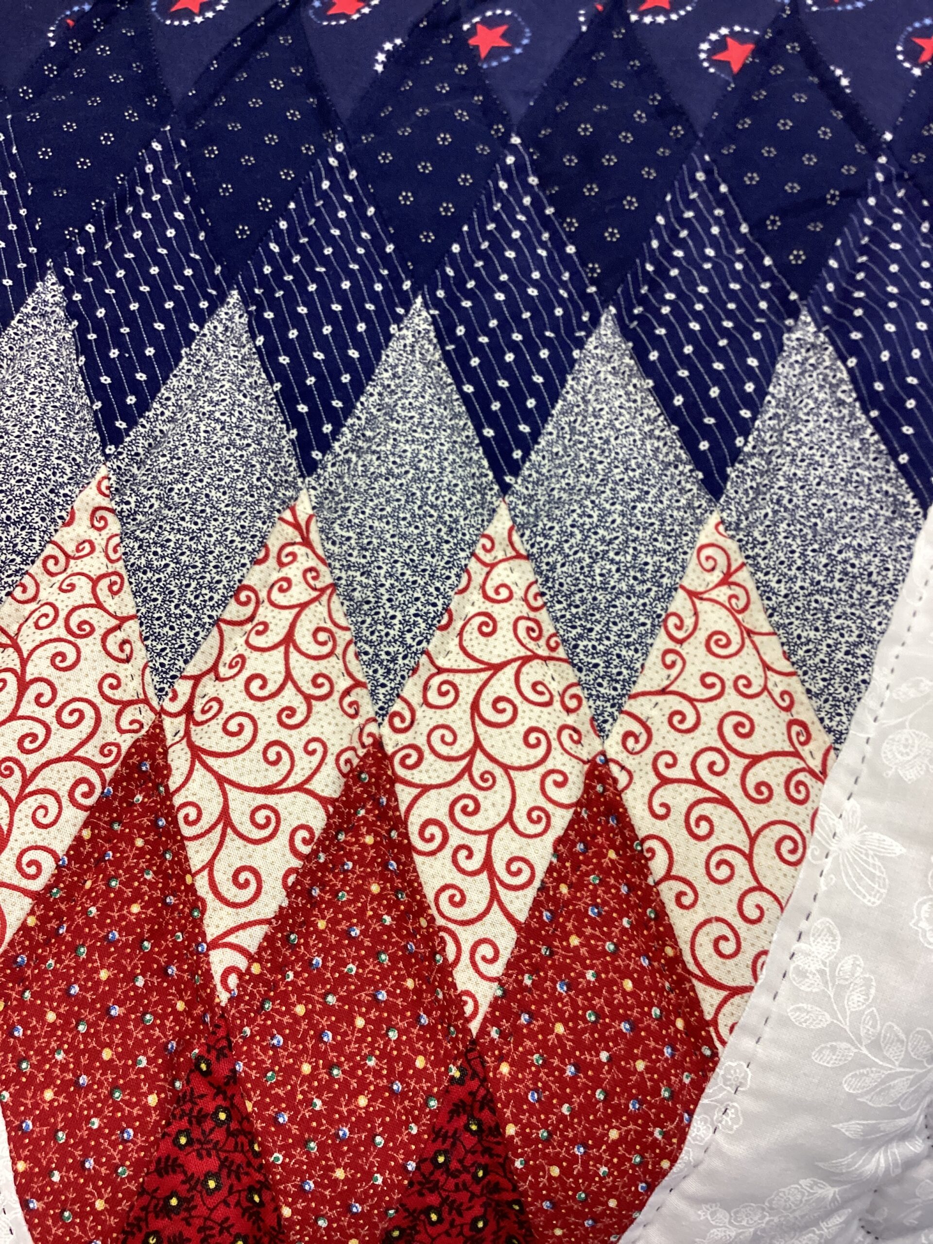 This Maryland star pattern is done with the thought of our love for this country in red, white and blue. Wonderfully created with diamond shapes of half square triangles
