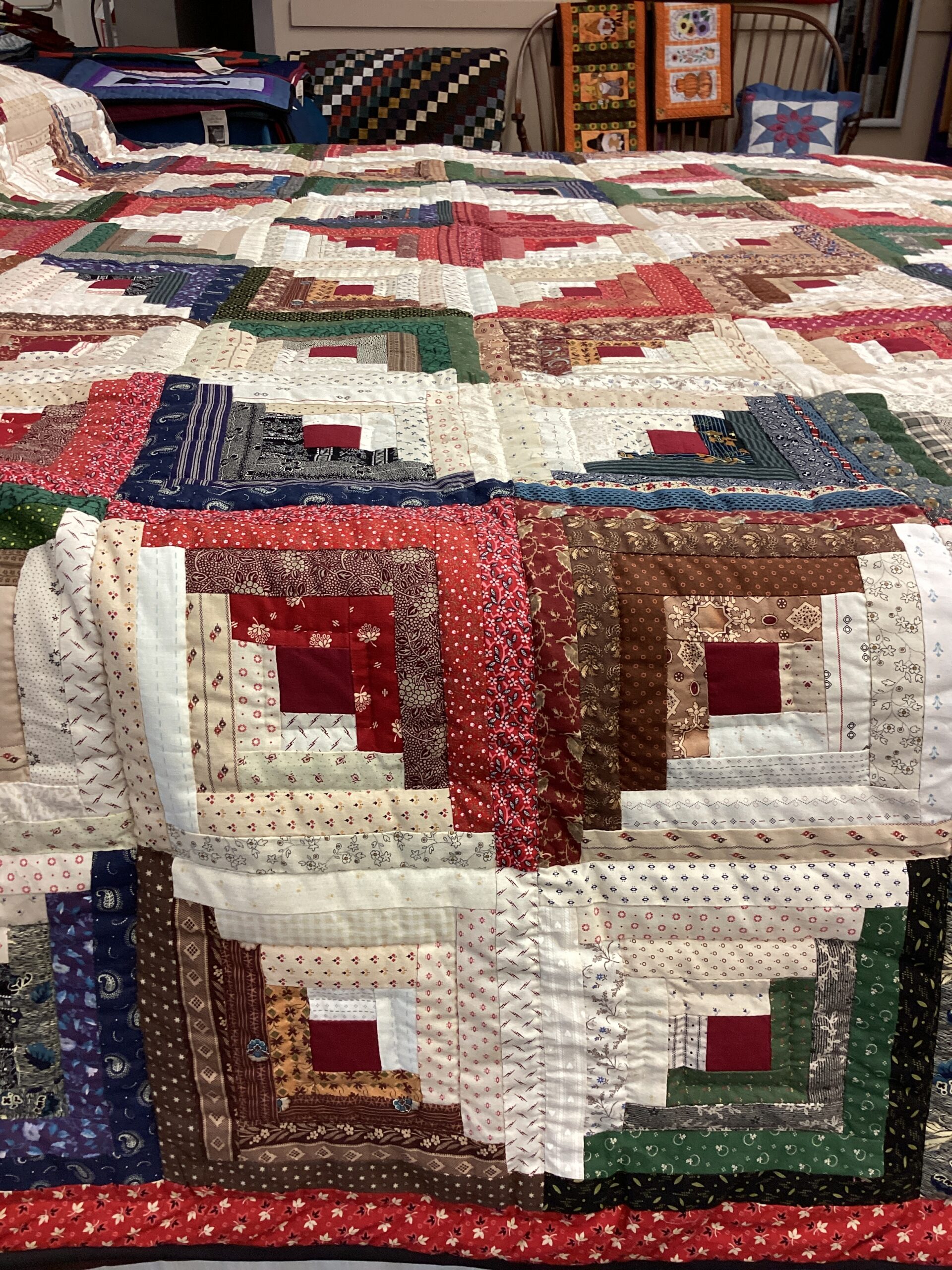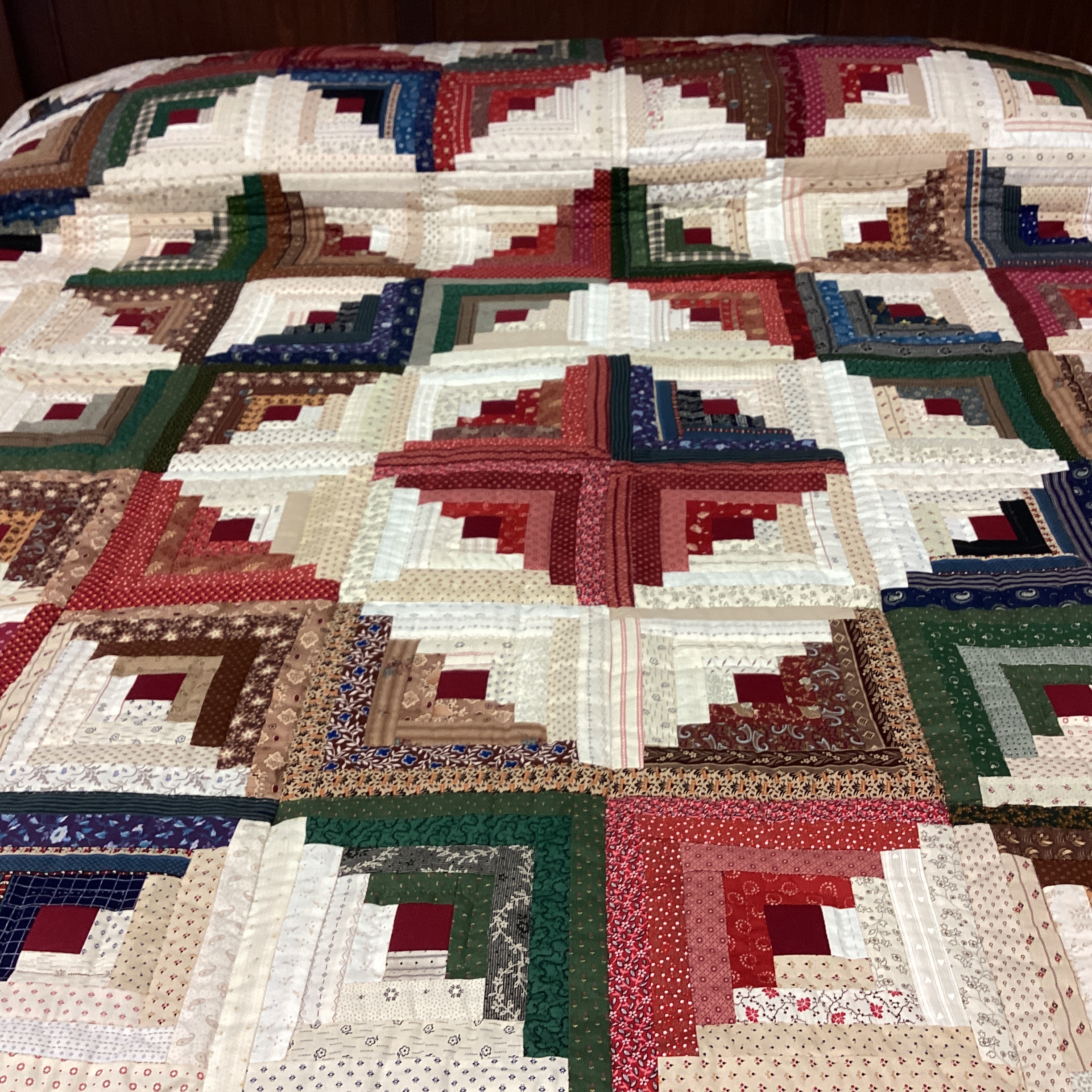 Old Fashion Log Cabin King Size Hand-Stitched Quilt
