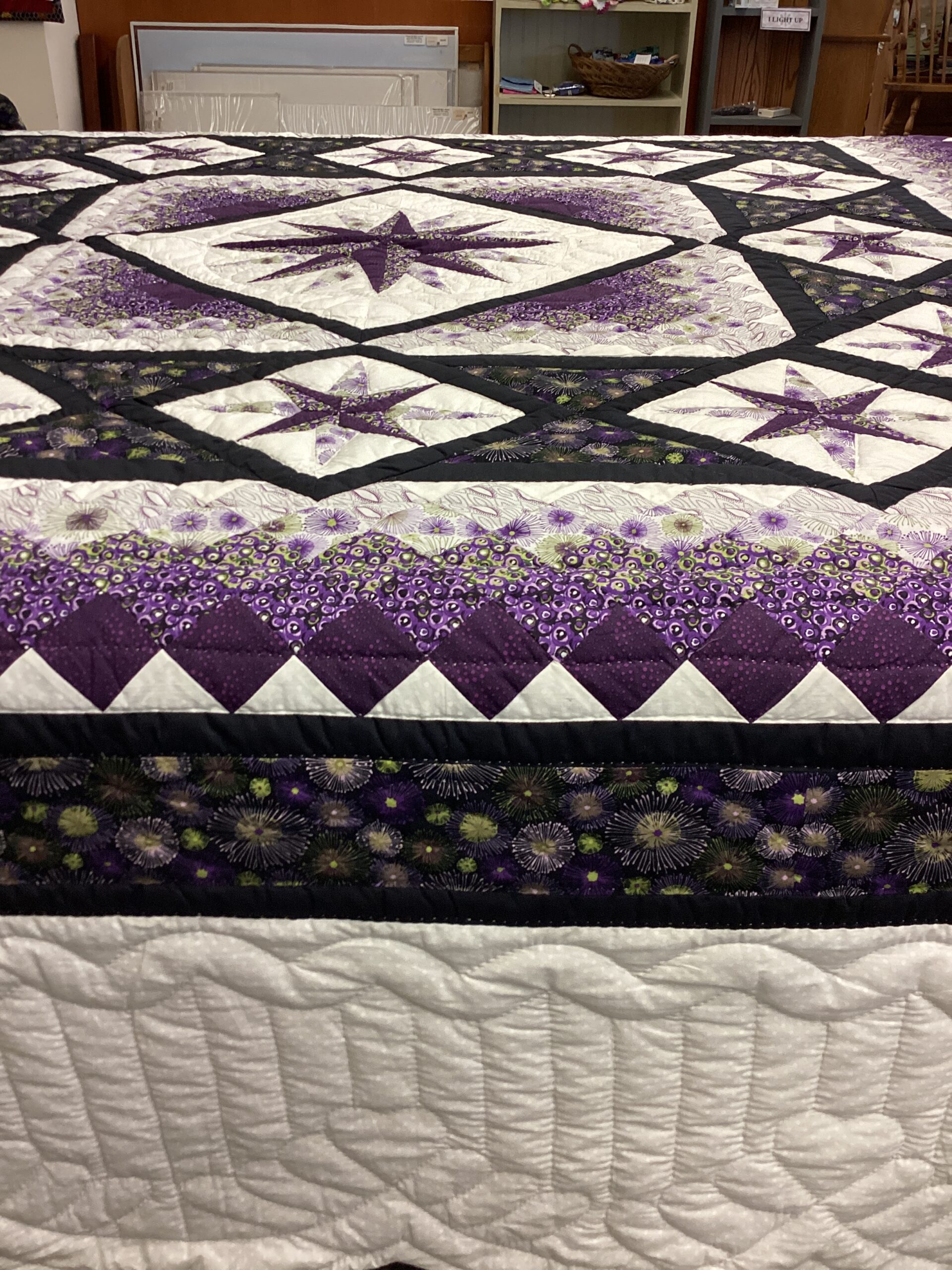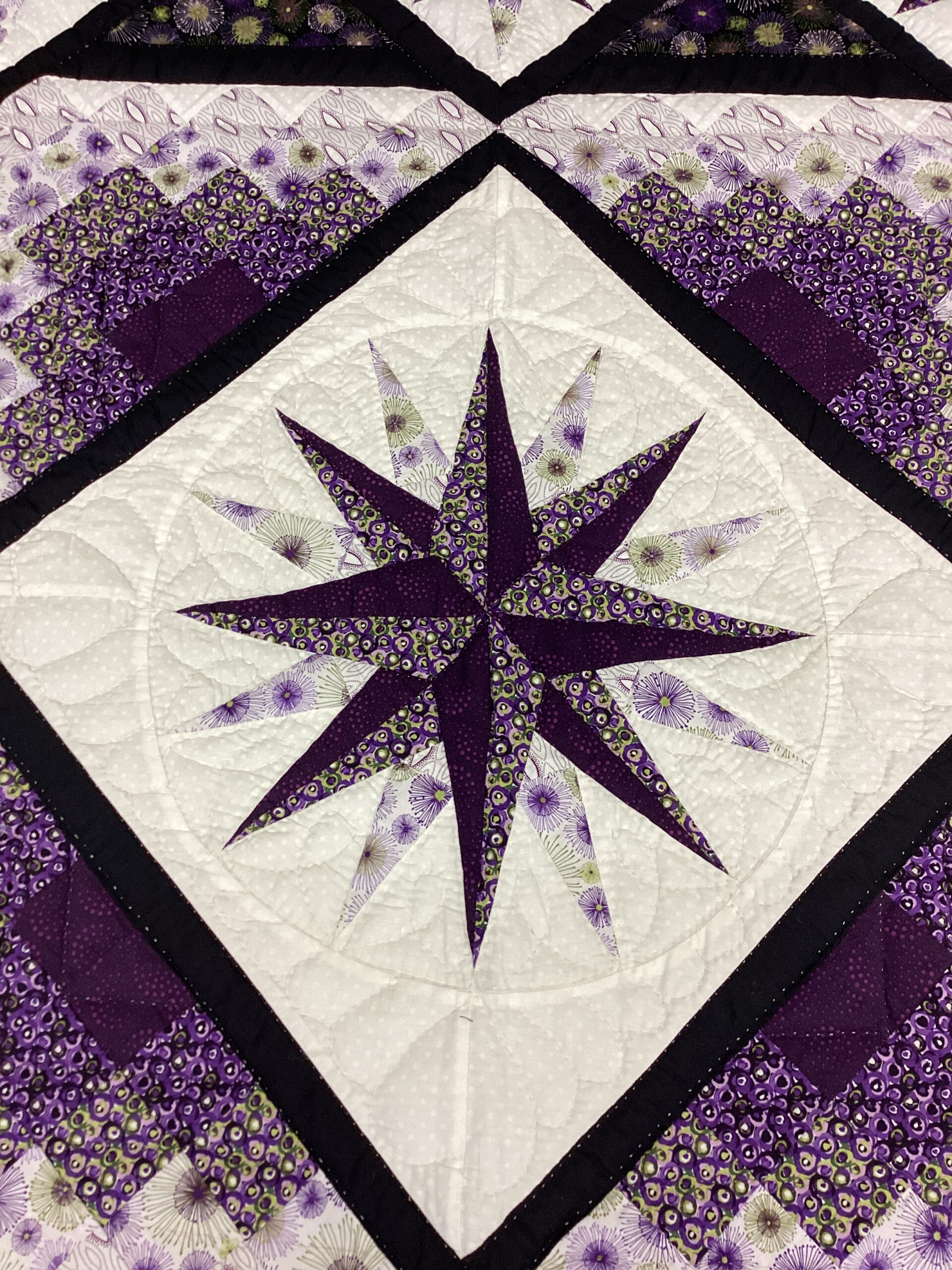 Beautiful Star quilt in purples and greens. Beautiful hand quilting seen thru out this lovely quilt.